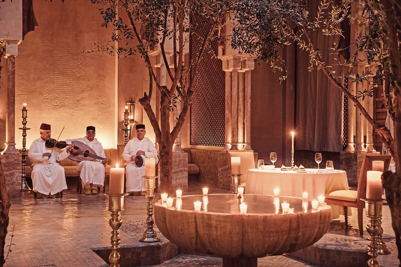 Amanjena bietet traditionelle marokkanische À-la-carte-Gerichte und eine Auswahl mediterraner Köstlichkeiten. Weiteres kulinarisches Highlight ist das Restaurant NAMA, das exquisite, von der japanischen Küche Washoku inspirierte Speisen serviert. Zum Frühstück ist das Restaurant am Pool (Winter) und die Pool Terrace (Sommer) geöffnet. Die Pool Terrace bietet mittags internationale, leichte Gerichte mit Golfplatz- und Poolblick. Auf Wunsch genießen Sie ein privates Dinner in Ihrem Pavilion oder in einem marokkanischen Festzelt.