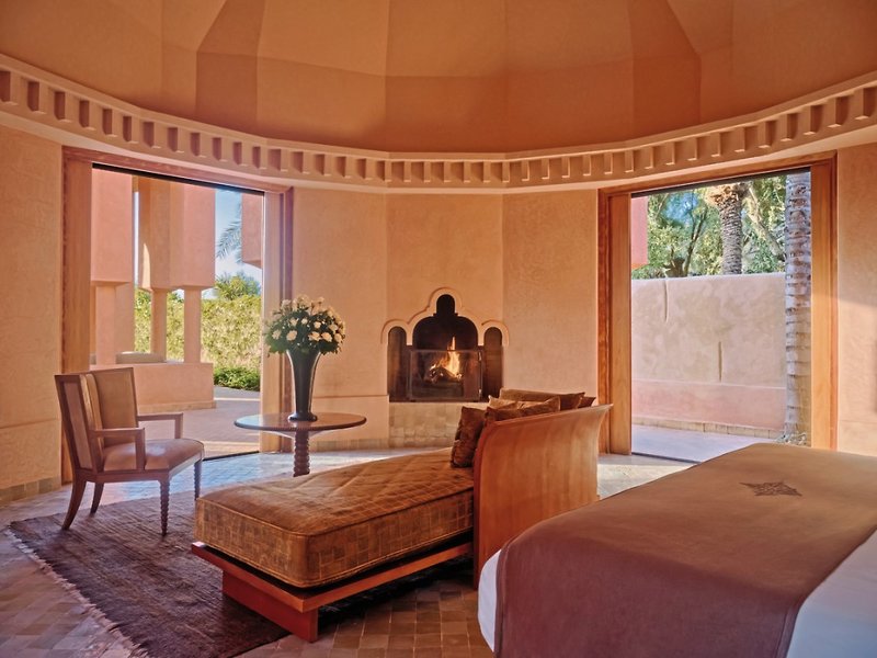 Oáza pokoja a luxusu v rajskom prostredí len pár minút od Marrákeša, obklopená golfovým ihriskom svetovej triedy s výhľadom na pohorie Atlas. Hotel Amanjena, miesto stretnutia pre hostí, ktorí ocenia pozorný servis, znamená „Pokojný raj“. Jeho názov odráža to, čo tento výnimočný rezort ponúka svojim hosťom – luxusnú oázu pokoja a harmónie v rajskom prostredí. Objekt je postavený ako rozprávkový sultánsky palác v maurskom štýle so zatienenými nádvoriami, vysokými kolonádami a nádhernými fontánami. Amanjena oslavuje harmóniu a krásu svojho okolia a bohaté kultúrne dedičstvo regiónu. Izby a verejné priestory boli zrekonštruované v lete 2015. Rezort, ktorý je súčasťou renomovanej skupiny Aman Group, sa nachádza približne 4 km od Marrákeša na okraji palmového a olivového hája a v tesnej blízkosti golfového ihriska Amelkis. Ponúka 3 reštaurácie, bar s krbom, knižnicu The Library (knižnicu s krbom), vyhrievaný bazén (10 x 33 m), slnečnú terasu, rozsiahle záhrady a veľký centrálny bazén. Súčasťou sú aj prvotriedne kúpele, posilňovňa a butik. Letisko v Marrákeši je vzdialené približne 12 km. 40 pavilónov a apartmánov je veľmi luxusne zariadených v miestnom štýle. Pavilón (10) cca 175 m² (vrátane cca 100 m² vonkajšej plochy): S veľkou mramorovou kúpeľňou, samostatným sprchovacím kútom, sušičom vlasov, županom, šatňou, telefónom, satelitnou TV, CD a DVD prehrávačom, Wi-Fi (bezplatne), trezorom, minibarom, kávovarom, klimatizáciou, posedením s krbom a terasou (100 m²) s ležadlami. Pavilón Bassin (6) cca 175 m² (vrátane cca 100 m² vonkajšej plochy): Navyše s výhľadom na priestranný bazén v strede komplexu. Pavilón Piscine (16) cca. 220 m2 (vrátane cca 145 m2 vonkajšej plochy): Navyše so súkromným bazénom (25 m2) a veľkou záhradou. Maison (4) cca 363 m2 (vrátane cca 100 m2 vonkajšej plochy): Cca 150 m2 vonkajšej plochy): Na 2 poschodiach s obývacou/jedálenskou časťou, 2 spálňami, 2 kúpeľňami. Súkromný bazén (cca 25 m2) a záhrada. Maison Jardin (3) cca 572 m2 (vrátane cca 350 m2 vonkajšej plochy): Na 2 poschodiach s obývacou/jedálenskou časťou, 2 spálňami, 2 kúpeľňami. Súkromný bazén (cca 25 m2) a záhrada. Al Hamra Maison cca 1 130 m2: s obývacou/jedálenskou časťou, 2 spálňami, 2 kúpeľňami. Súkromný vyhrievaný bazén (cca 36 m2) a záhrada s 2 tradičnými a rekreačnými bazénmi. Fitnescentrum, 2 osvetlené tenisové kurty (lekcie tenisu za príplatok). Za príplatok: Sprievodcované výlety do Marrákeša alebo okolia. Hneď vedľa hotela Amanjena sa nachádza vynikajúci golfový klub „Amelkis“ od Cabella B. Robinsona v nádhernom prostredí s čiastočným výhľadom na pohorie Vysoký Atlas. Približne 1 km od hotela sa nachádza „Kráľovské golfové ihrisko“, jedno z najstarších ihrísk v krajine a oáza pokoja vo veľkom parku (handicap 35 pre ženy, 32 pre mužov). Nové golfové ihrisko „Al Maaden“, ktoré navrhol Kyle Phillips, je vzdialené asi 3 km. Golfové vybavenie si môžete v hoteli prenajať za poplatok (Wilson, obmedzená dostupnosť); transfery na všetky tri golfové ihriská sú bezplatné. Kúpele Amanjena v maurskom štýle ponúkajú hammam, vírivku a fitnescentrum. Za poplatok sú k dispozícii rôzne masáže, procedúry, zábaly s marockými bylinkami a kozmetické ošetrenia. Kaderníctvo, hodiny jogy a relaxácie, tetovanie hennou (na požiadanie). Stravovanie: Hotel Amanjena ponúka raňajky à la carte, tradičné marocké jedlá à la carte a výber stredomorských špecialít. Ďalším kulinárskym skvostom je reštaurácia NAMA, ktorá podáva vynikajúce jedlá inšpirované japonskou kuchyňou Washoku. Raňajky sa podávajú v reštaurácii pri bazéne (v zime) a na terase pri bazéne (v lete). Na obed s výhľadom na golfové ihrisko a bazén ponúka terasa pri bazéne ľahké medzinárodné jedlá. Súkromnú večeru je možné usporiadať vo vašom pavilóne alebo na požiadanie v stane v marockom štýle.Eine Oase der Ruhe und des Luxus in paradiesischer Lage wenige Minuten von Marrakesch, umrahmt von einem erstklassigen Golfplatz mit Blick zum Atlas-Gebirge. Ein Treffpunkt für Gäste, die den aufmerksamen Service schätzen.