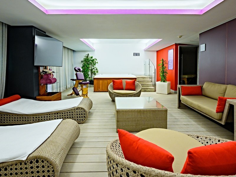 Sport & Fitness: Innen- und Außenpools eignen sich hervorragend für regelmäßiges Aquatraining und aktive Erholung. Auch eine Terrasse mit Sonnenliegen und Sonnenschirmen ist vorhanden. Wohlige Entspannung verspricht der Whirlpool im Badebereich. Wer auch auf Reisen nicht auf Sport verzichten möchte, dem bietet das Hotel Radfahren/Mountainbiking. Fitnessstudio, Gymnastik und Aerobic sind Teil des Sport- und Freizeitangebots des Hauses. Im Hotel werden verschiedene Wellnessangebote wie Spa, Sauna, Dampfbad, Hammam, Massage-Anwendungen, Hydrotherapie-Anwendungen und Solarium offeriert. Das Animationsteam der Unterbringung legt Unterhaltungsprogramme für Kinder und Erwachsene auf.
