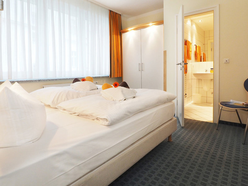 - Doppelzimmer Landseite (DZX2), Doppelzimmer, Landseite, Straßenseite, 1 Zustellbett, Babybett: ohne Gebühr, Reservierung notwendig, Fußboden: Teppichboden, Safe: ohne Gebühr, Telefon, Fernseher: Sat-TV, Badewanne oder Dusche, WC, Föhn