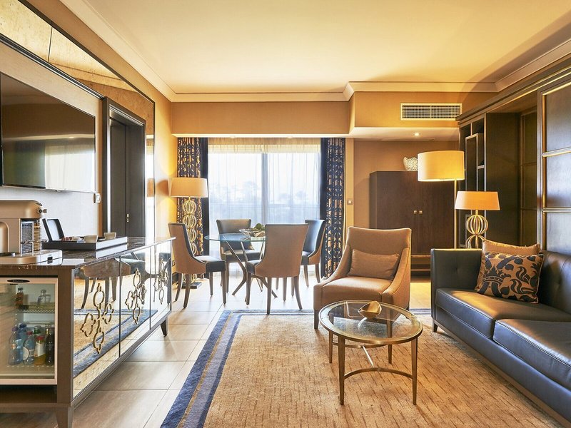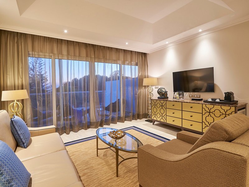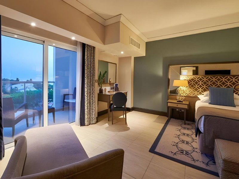 Vaše ubytovanie: Izby sú vybavené klimatizáciou a individuálne nastaviteľným kúrením. Hostia si môžu oddýchnuť a vychutnať si výhľad na more na balkóne alebo súkromnej terase väčšiny izieb. Izby majú manželskú posteľ, manželskú posteľ alebo posteľ veľkosti king. K dispozícii je aj trezor, minibar a písací stôl. Štandardným vybavením je aj zariadenie na prípravu kávy/čaju. K dispozícii je aj žehliaca súprava a lis na nohavice. Okrem toho je k dispozícii telefón s priamou voľbou, televízor so satelitným/káblovým príjmom, rádio a Wi-Fi pripojenie na internet (bezplatné). Hostia môžu tiež využiť službu na dobrú noc. K vybaveniu izby patria papuče. Kúpeľňa je vybavená sprchovacím kútom a vaňou, sušičom vlasov a županmi. Kozmetické produkty poskytujú v kúpeľniach extra pohodlie. Je možné si rezervovať izby prístupné pre vozíčkarov. Pre rodičov s deťmi sú k dispozícii rodinné izby.