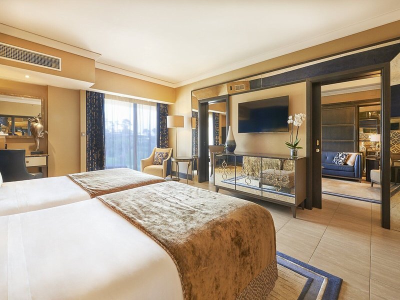 Das bietet Ihre Unterkunft: Das Resort bietet 9 Junior-Suiten, 13 Suiten und 132 Doppelzimmer auf 5 Etagen, die mit 3 Aufzügen erreichbar sind. Das freundliche Personal an der Rezeption ist gerne bei allen Fragen behilflich. Eine Garderobe, eine Gepäckaufbewahrung, ein Safe und eine Wechselstube gehören zur Einrichtung der Ferienanlage. Per WLAN erhalten die Gäste Zugang zum Internet (gegen Gebühr). Hilfestellung bei der Buchung von Ausflügen wird am Tourdesk geboten. Die Unterbringung verfügt über eine Reihe von behindertengerechten Annehmlichkeiten. Rollstuhlgerechte Einrichtungen sind vorhanden. Es ist eine Reihe von Geschäften vorhanden, die zum Schlendern und Stöbern einladen. Ein schöner Garten und ein Spielplatz gehören zum Gelände des Resorts. Zu den weiteren Einrichtungen der Unterbringung zählen ein TV-Raum und eine Bibliothek. Bei einer Anreise mit dem Auto können die Gäste dieses in einer Garage oder auf dem Parkplatz parken. Unter den weiteren Leistungen finden sich eine Kinderbetreuung, eine Autovermietung, medizinische Betreuung, ein kostenpflichtiger Zimmerservice, ein Wäscheservice, ein Friseur und ein eigener Shuttlebus. Aktive Reisende, die die Umgebung per Rad entdecken möchten, werden den Fahrradverleih (gegen Gebühr) zu schätzen wissen. Bei Geschäftlichem hilft das Business-Center gerne weiter und bietet ein Faxgerät an. Für Konferenzen, Vorträge oder Tagungen stehen 2 Räume zur Verfügung.