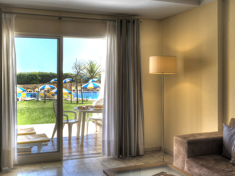 - Jednospálňový apartmán Superior (APX4), apartmán, nefajčiarska izba, strana bazéna, výhľad na bazén, výhľad na bazén, cca 48 m², celkový počet izieb v tomto type izby: 2, rozloženie: 1 spálňa, 2. jednolôžka (90x190cm), detská postieľka: bez poplatku, nutná vyžiadanie a rezervácia, podlaha: dlažba, trezor: za poplatok, ventilátor na státie, pohovka, žehlička, žehliaca doska, kuchynský kút, chladnička, varná doska, mikrovlnná rúra, kávovar, káva /čajník, rýchlovarná kanvica, hriankovač, jedálenský stôl, telefón, TV: v obývacej časti, vaňa, WC, fén, balkón alebo terasa: s ležadlami, s posedením
