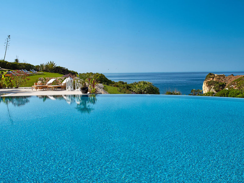 Poloha a okolie: Tento rozsiahly rezort, majestátne umiestnený na útesoch, sa nachádza na okraji mesta Porches, približne 4 km od centra mesta. Rezort sa nachádza v 22-hektárovom subtropickom parku a pozostáva z hlavnej budovy, rezidencie v štýle panstva, dvojposchodových radových víl Oasis Parc, samostatne stojacich víl a elegantného wellness centra VILA VITA Spa by Sisley. Rezidencia sa nachádza v blízkosti pláže, zatiaľ čo hlavná budova a radové vily sú vzdialené približne 200 m a kúpele sú vzdialené asi 270 m. Malá verejná plážová zátoka je prístupná po schodoch. Jednodňové výlety na súkromnej jachte hotela alebo do vlastného vinohradu v regióne Alentejo zaručujú súkromný a exkluzívny zážitok. Čas transferu: približne 45 minút.