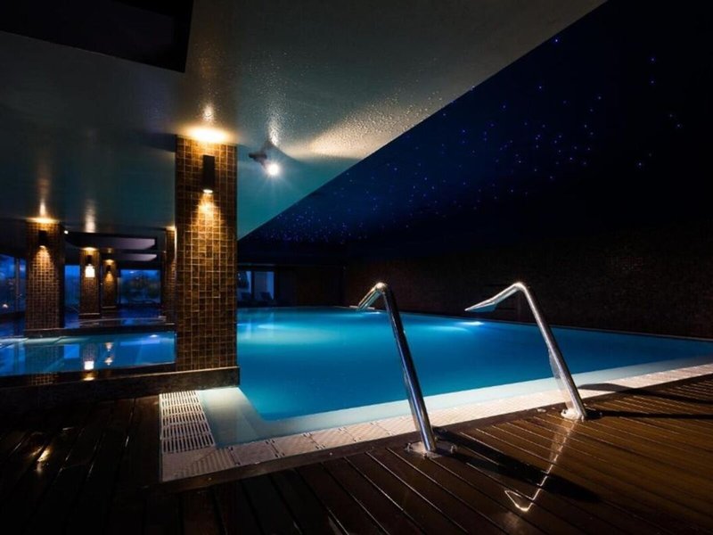 - Bazény: Vnútorný bazén, vonkajší bazén, slnečníky pri bazéne, ležadlá pri bazéne