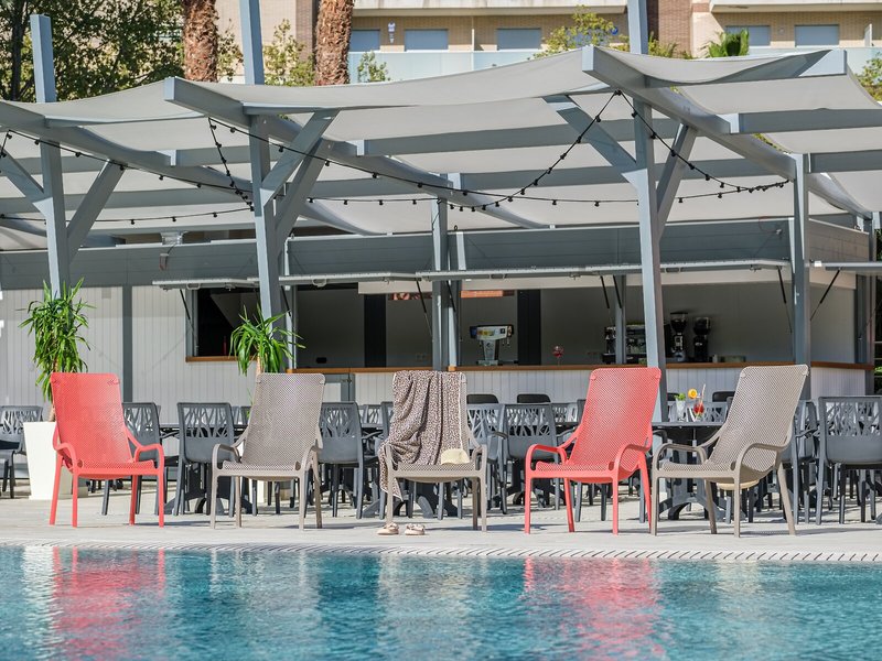 Sport & Fitness: Während die Erwachsenen im Außenpool ein paar Runden schwimmen, kommen die Kinder im Planschbecken auf ihre Kosten. Pure Tiefenentspannung im Whirlpool, Vergnügen auf der Wasserrutsche und erfrischende Getränke an der Poolbar – die Gäste werden erleben, wie abwechslungsreich der Wasserspaß sein kann. Auf der Terrasse können die Urlauber schönes Wetter genießen. Wem der Sinn nach Bewegung steht, werden Radfahren/Mountainbiking, Boccia und Minigolf angeboten. Tischtennis und Squash sowie gegen Gebühr ein Fitnessstudio sind Teil des Sport- und Freizeitangebots. In der Unterbringung werden verschiedene Wellnessangebote wie Spa, Sauna, Dampfbad, Hammam, Massage-Anwendungen und Solarium offeriert. Zum Unterhaltungsprogramm gehören ein Animationsprogramm und Live-Musik.