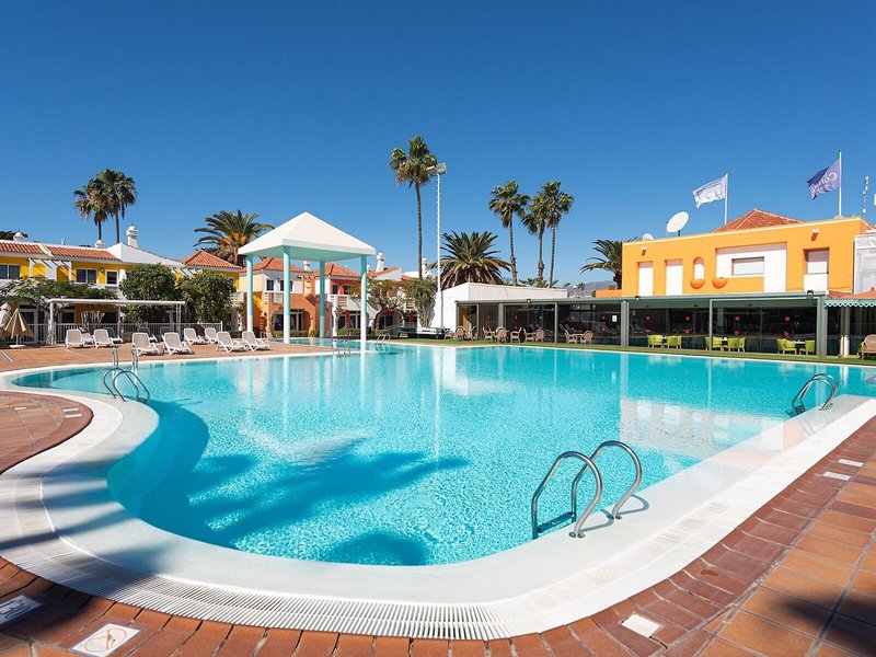 Toto vás čaká: Tento priestranný a tichý komplex bungalovov zaujme najmä svojou polohou hneď vedľa golfového ihriska Maspalomas Bazény s veľkými plochami na opaľovanie, obklopené farebnou, veselou architektúrou, sa postarajú o vodné radovánky a pozývajú na slnenie.