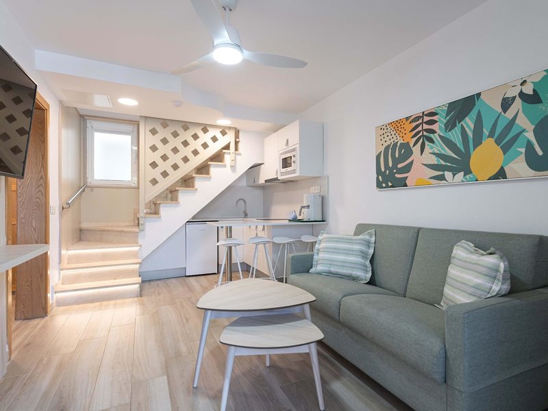 - Bungalow Plus - 1 bedroom (BUX2), Bungalow, Gartenblick, Blick auf vistas privilegiadas, ca. 37 m², letzte Komplettrenovierung 2020, Gesamtanzahl der Räume in diesem Zimmertyp: 2, Aufteilung wie folgt: kombiniertes Wohn-/Schlafzimmer, Maisonette, 1 Schlafzimmer, 2 Einzelbetten (90x200cm), 1 Schlafsofa (120x190cm), Babybett: ohne Gebühr, Anfrage notwendig, Reservierung nicht notwendig, Fußboden: Fliesenboden, Safe: gegen Gebühr, Deckenventilator, Sitzecke, Sofa, Kochnische, Kochplatte, Mikrowelle, Kaffeemaschine, Kaffee-/Teezubereiter, Wasserkocher, Toaster, Esstisch, Telefon, Internet: WLAN/WiFi: ohne Gebühr, Fernseher: Flatscreen, im Wohnbereich, im Schlafzimmer, Sat-TV, Reinigungsservice: mehrmals pro Woche, ohne Gebühr, Dusche, WC, Föhn, Kosmetikspiegel, Balkon oder Terrasse, Terrasse: mit Sitzgelegenheit