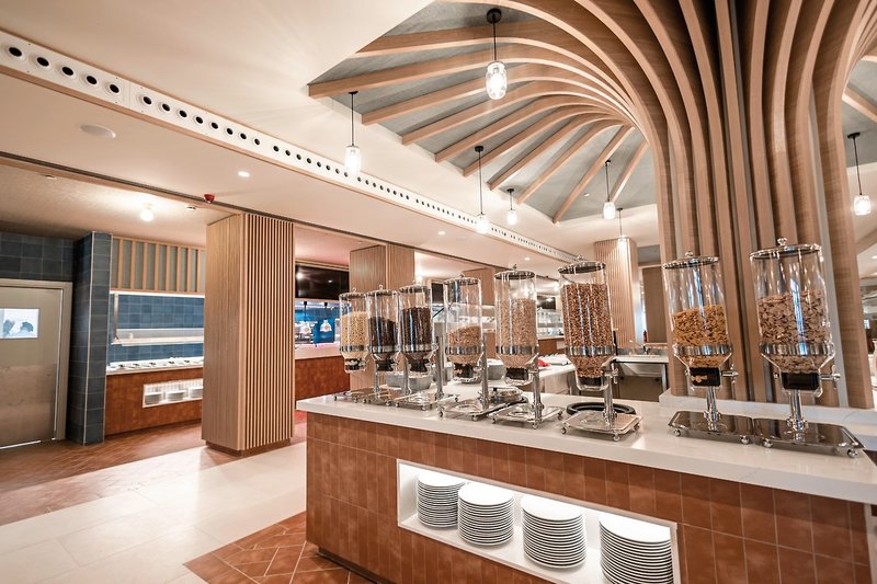 - All Inclusive Plus: Frühstück (Buffet), Langschläferfrühstück bis 12:15 Uhr, Mittagessen (Buffet), Abendessen (Buffet), Getränke zu den Mahlzeiten kostenfrei (Softdrinks, Kaffee/Tee, Bier, Hauswein, Wasser), Getränke kostenfrei (Softdrinks, Kaffee/Tee, Bier, Säfte, Hauswein, Cocktails, Spirituosen, Wasser, 10-23 Uhr), 24 Stunden inklusive: Snacks, selbstgemachtes italienisches Eis, Marken-Getränke, Barrista-Kaffee; außerdem: gesonderter Sitzbereich im Restaurant und zum Geburtstag gibt es einen Kuchen.