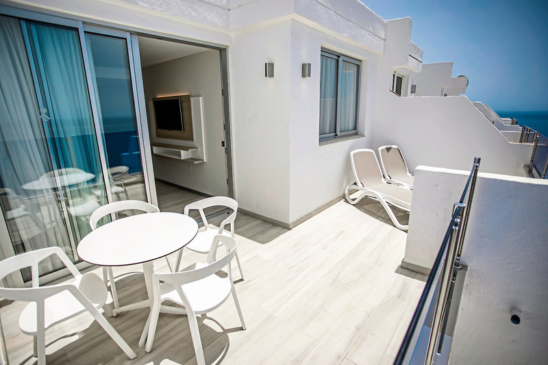 - 31-35 qm, Juniorsuite, Classic, Meerblick (seitlich), separates Schlafzimmer, Regendusche, WC, Haartrockner, Kosmetikspiegel, Klimaanlage, Heizung, Safe, TV (Sat-TV), Kochnische, Wasserkocher, Mikrowelle, Kaffeemaschine, Toaster, Kühlschrank, Balkon (möbliert)