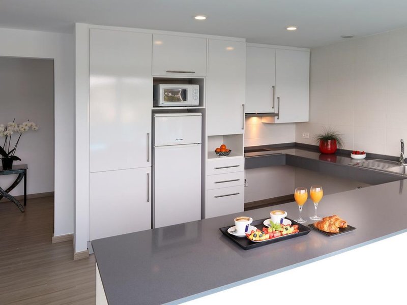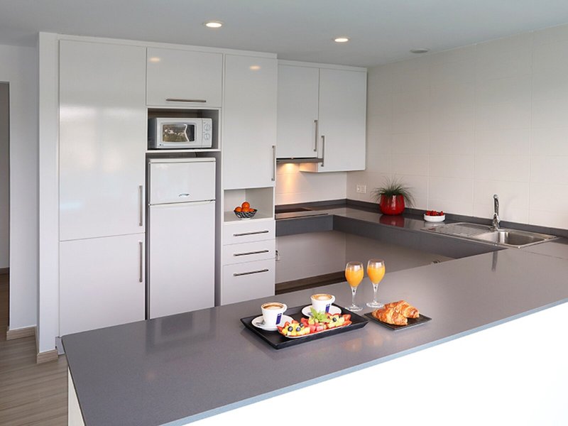 So wohnen Sie: Die Zimmer sind mit einem Wohnbereich, einer Küche und einem Badezimmer ausgestattet, außerdem sorgen eine Klimaanlage und eine Heizung für gutes Raumklima. In den meisten Unterkünften genießen die Gäste von Balkon oder Terrasse einen Ausblick auf das Meer. Die Zimmer verfügen über ein Kingsizebett und ein Sofabett. Zustellbetten können angefordert werden. Außerdem sind ein Safe, eine Minibar und ein Schreibtisch verfügbar. In der Kochnische befinden sich ein Kühlschrank, eine Mikrowelle und eine Tee-/Kaffeemaschine. Eine Waschmaschine ist für den zusätzlichen Komfort der Gäste verfügbar. Darüber hinaus sind ein Telefon mit Direktwahl, ein TV-Gerät mit Satelliten-/Kabelempfang und WiFi (ohne Gebühr) vorhanden. Zum Service-Angebot gehört auch eine Endreinigung. Zu den Vorzügen der Zimmer gehören Hausschuhe. Im Badezimmer, ausgestattet mit einer Dusche, sind ein Haartrockner und Bademäntel vorhanden. Für besonderen Komfort in den Badezimmern sorgen Kosmetikartikel und eine Auswahl an Handtüchern. Es sind auch rollstuhlgerechte Zimmer mit barrierefreiem Bad verfügbar. Die Unterbringung bietet Raucherzimmer.