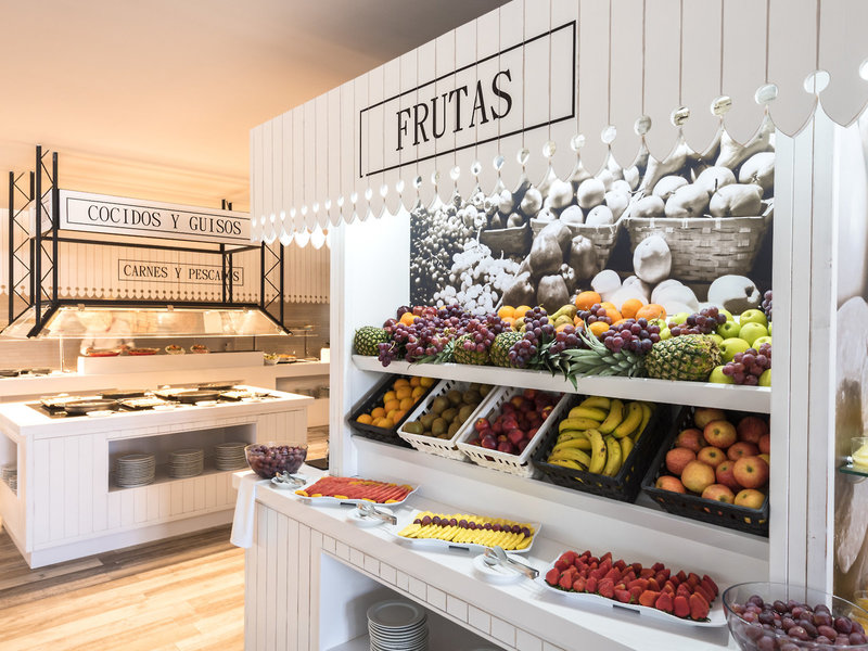 - Hlavná reštaurácia: Kuchyňa: medzinárodná, talianska, stredomorská, regionálna, španielska, bezlepkové jedlá: bez poplatku, žiadosť a rezervácia nie je potrebná, vegetariánske jedlá: bez poplatku, žiadosť a rezervácia nie je potrebná, bufet, show cooking, bez poplatku, máj - október, denne 8:00 - 11:00, 13:00 - 15:00 a 19:00 - 22:00, klimatizované, s terasou, vhodné oblečenie