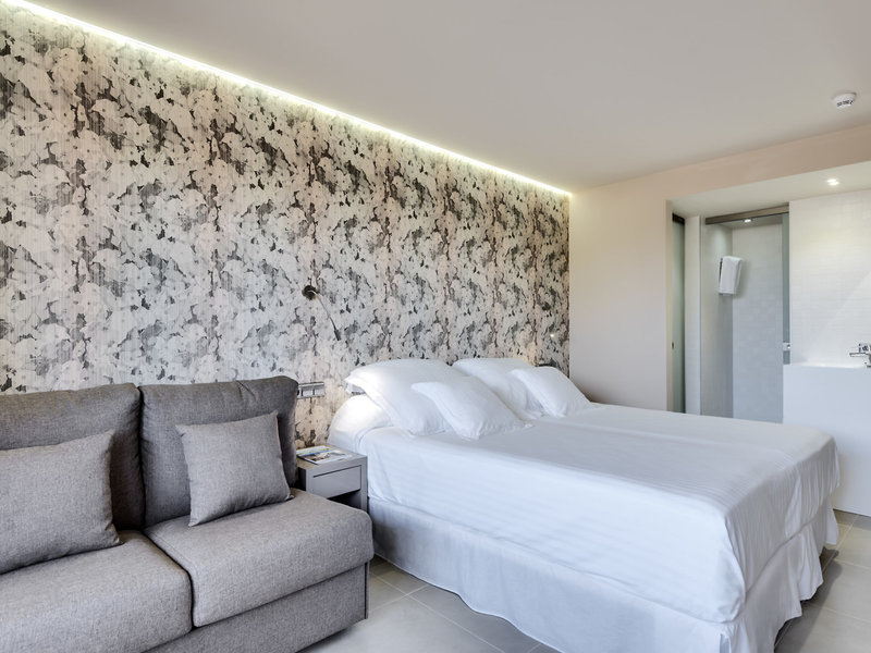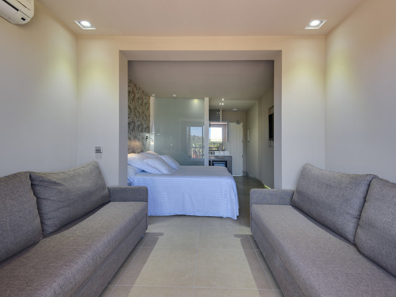 - Family Room (FZX1), Familienzimmer, Nichtraucherzimmer, im Hauptgebäude, Gartenseite, Poolblick, Gartenblick, ca. 28 - 29 m², Gesamtanzahl der Räume in diesem Zimmertyp: 1, Aufteilung wie folgt: kombiniertes Wohn-/Schlafzimmer, 2 Einzelbetten (90x200cm), 2 Schlafsofas (90x200cm), Klimaanlage: ohne Gebühr, individuell regelbar, warm, Fußboden: Fliesenboden, Safe: gegen Gebühr, Minibar: gegen Gebühr, Telefon, Internet: WLAN/WiFi: ohne Gebühr, Fernseher: Flatscreen, im Schlafzimmer, deutsches Programm, Sat-TV, Reinigungsservice: 09:00 Uhr - 15:00 Uhr, Dusche, Regendusche, WC, Bad durch Glaswand getrennt, Föhn, Balkon oder Terrasse: mit Sitzgelegenheit