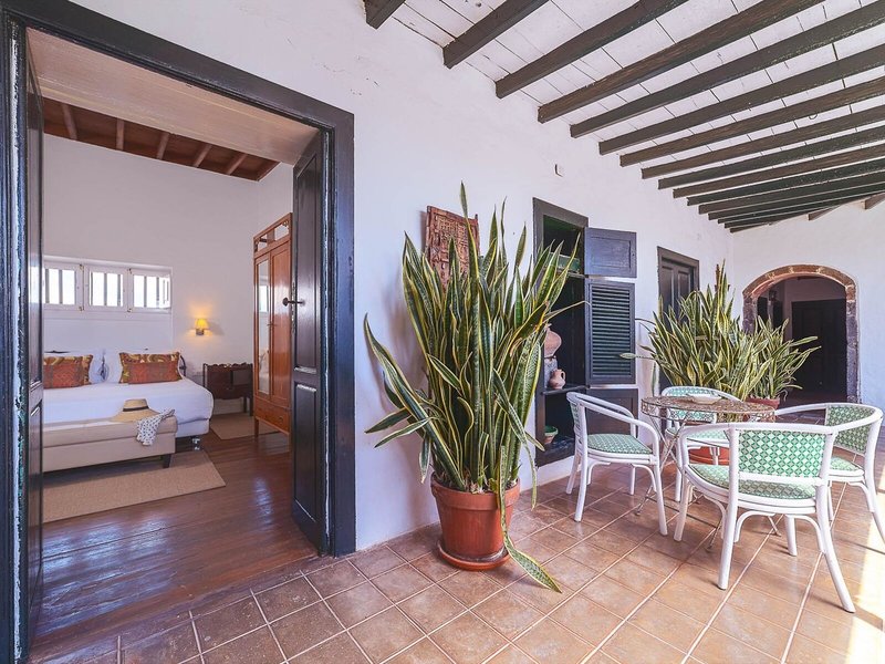 Lage & Umgebung Das Landhotel liegt im Herzen von Lanzarote in der Gemeinde San Bartolomé, umgeben von malerischen Weingütern und Vulkanlandschaften. Die nächste Bushaltestelle ist ca. 200 m entfernt und verbindet die Umgebung mit Arrecife, rund 10 km entfernt. Der Nationalpark Timanfaya, eine einzigartige und erstaunliche Sehenswürdigkeit, liegt ungefähr 20 km entfernt.