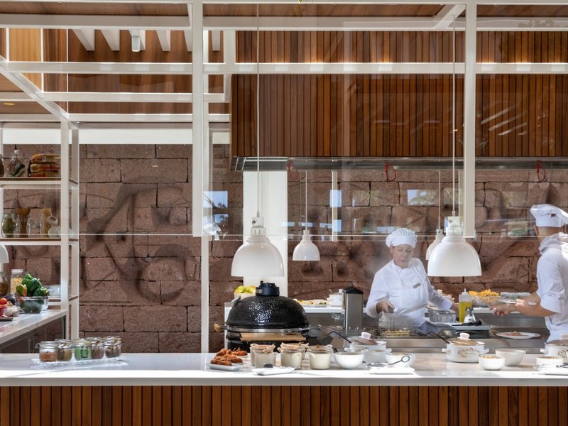 - Hlavná reštaurácia Malva Food Bazaar: od 16 rokov, kuchyňa: medzinárodná, typická, stredomorská, regionálna, bezlepkové jedlá: bez poplatku, nutná požiadavka a rezervácia, bezlaktózové jedlá: bez poplatku, vyžiadanie a rezervácia nutná, vegetariánske jedlá: bez poplatku, požiadavka & rezervácia nutná, vegánske jedlá: bez poplatku, vyžiadanie a rezervácia nutná, bufet, show cooking, dinearound, požiadavka nie je nutná, rezervácia nutná, bez poplatku, zahrnuté v All Inclusive, január - december, denne 8:00 hod. - 10:30, niekoľkokrát týždenne 19:00 - 22:00, klimatizované, s terasou, vhodné oblečenie