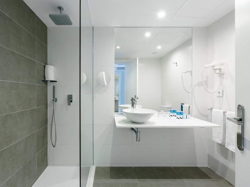 Wohnen: Doppelzimmer (DZ, ca. 21 qm), modern gestaltet, Klimaanlage (warm/kalt), Minibar (täglich 1 Flasche Wasser ab 01.04.26: gegen Gebühr; täglich 1 Flasche Wasser inklusive bei Buchung von AI), TV (42 Zoll), Telefon, WLAN (inkl.), Mietsafe. Badezimmer mit bodengleicher Dusche, WC, Föhn, Bademäntel, Hausschuhe. Balkon. Wahlweise Meerblick (DZM, ab 01.04.26).