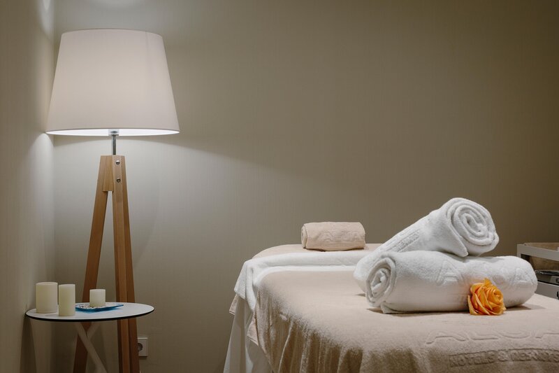 Wellness und Fitness: Wellnessbereich (gegen Gebühr; bei Buchung von AI inklusive) mit Jacuzzi, Sauna, Dampfbad, Ruhezone