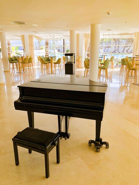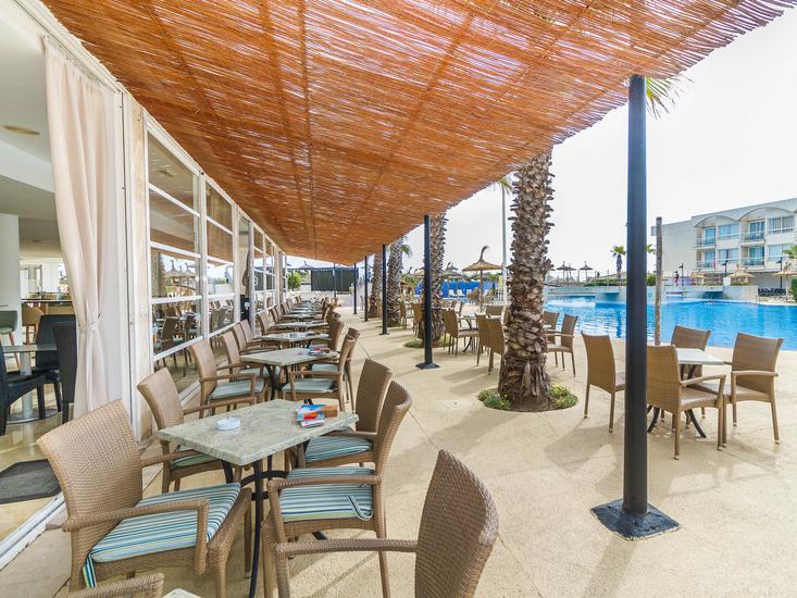 Ausstattung: Garten, 2 Pools, Kinderpool. Liegen, Schirme am Pool und am Strand (geg. Geb.), Handtücher am Pool (geg. Geb.), Snackbar, Sonnenterrasse. Empfangshalle, Rezeption. Restaurant (Buffet), Bar, Minimarkt, Friseur. 243 Zimmer, 4 Etagen, 1 Nebengebäude, 4 Lifte.