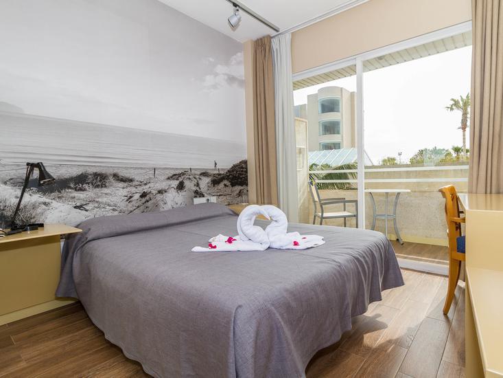 Standard Zimmer (Balkon, Meerblick): Minikühlschrank (geg. Geb.). Telefon, Internet (geg. Geb.), Safe (geg. Geb.). Bad/Dusche, WC, Föhn. Balkon. Max. 2E.