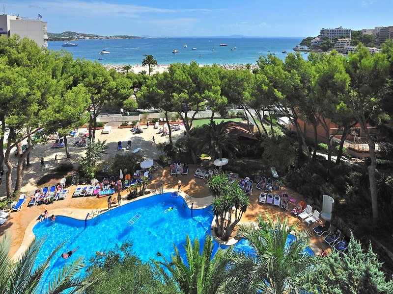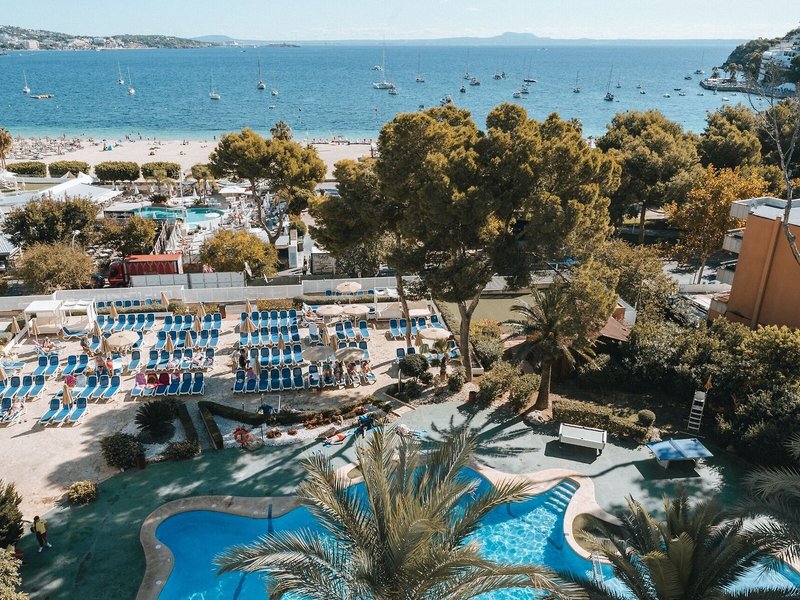 Lage & Umgebung Das familienfreundliche Strandhotel liegt gegenüber dem Meer auf einer Anhöhe und bietet herrliche Ausblicke auf die Bucht von Palma Nova. Den Strand von Son Matias erreicht man nach nur rund 2 Gehminuten vom Feriendorf aus, ebenso das Zentrum von Palma Nova. Das Tourismuszentrum von Palma ist etwa 15 Fahrminuten entfernt. Die Umgebung bietet viele Unterhaltungsmöglichkeiten, so etwa den Wasserpark, das Kasino (rund 3 km entfernt) und ein buntes Nachtleben. Der Flughafen Palma de Mallorca-Son Sant Joan ist etwa 17 km von dem umweltfreundlichen Hotel weit weg.