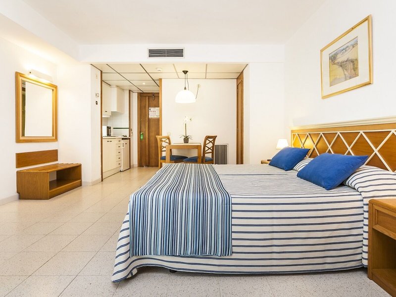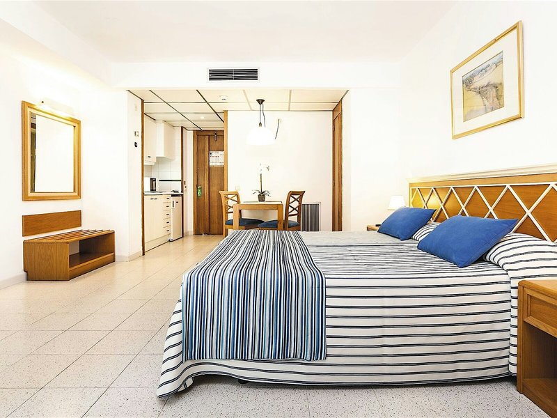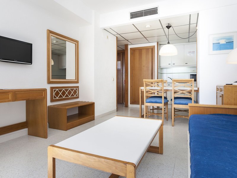 Vaše ubytovanie: Izby pozostávajú z obývacej izby, kuchyne a kúpeľne, pričom klimatizácia, kúrenie a ventilátor zabezpečujú príjemnú klímu v miestnosti. Hostia si môžu vychutnať výhľad na more z balkóna alebo terasy. Izby majú manželskú posteľ alebo rozkladaciu pohovku. Prístelky je možné vyžiadať. K dispozícii je aj trezor a písací stôl. K dispozícii je plne vybavená kuchynka s chladničkou, mini chladničkou, mikrovlnnou rúrou a zariadením na prípravu čaju/kávy. Telefón s priamou voľbou, televízor so satelitným/káblovým príjmom, rádio a WiFi (bezplatné) poskytujú najlepší komfort počas dovolenky. Kúpeľňa je vybavená sprchovacím kútom a vaňou, sušičom vlasov a telefónom. Kozmetické produkty poskytujú v kúpeľniach extra pohodlie. K dispozícii sú aj bezbariérové izby s bezbariérovými kúpeľňami. Apartmánový hotel ponúka rodinné izby a 135 nefajčiarskych izieb.