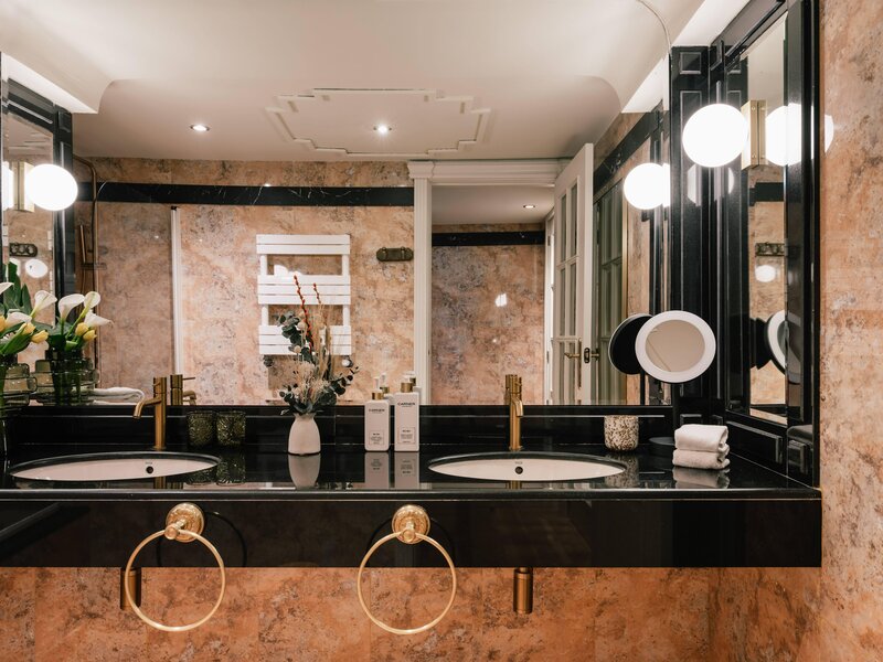 Ubytovanie: Dvojlôžková izba Deluxe (DZD, cca 28 m²), zrekonštruovaná, elegantne a luxusne zariadená, klimatizácia (teplo/chladenie, centrálne ovládaná), minibar, 37-palcový TV, telefón, Wi-Fi (v cene), trezor. Kúpeľňa s WC, sušičom vlasov, županmi, papučami a kvalitnými toaletnými potrebami Clarins. Max. 2 dospelí.