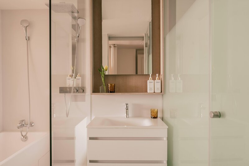 Einzelzimmer Deluxe (EZD, ca. 22 qm), elegant und luxuriös eingerichtet, Klimaanlage (warm/kalt, zentral gesteuert), Minibar, TV (37 Zoll), Telefon, WLAN (inkl.), Safe. Bad, WC, Föhn, Bademäntel, Slipper, hochwertige Pflegeprodukte von Clarins