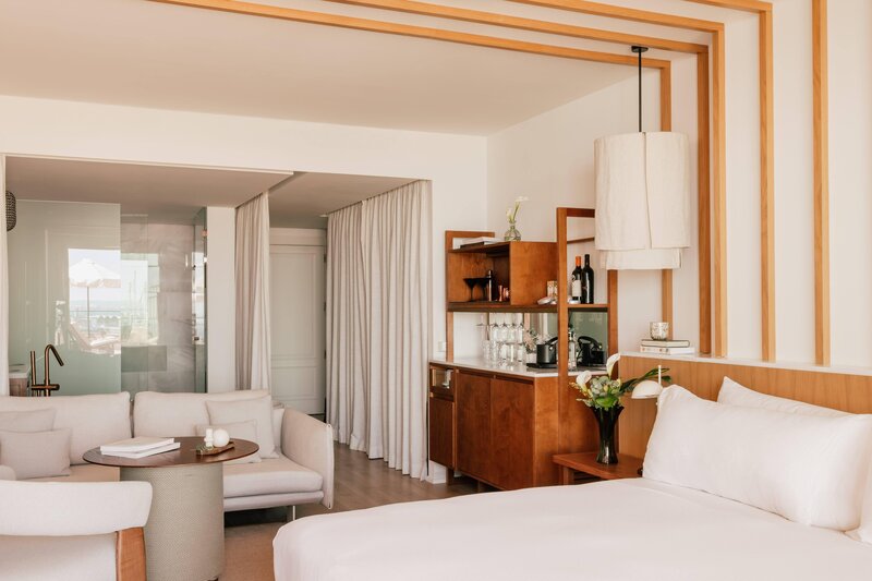 Doppelzimmer Supreme 'Red Level' (DSP, ca. 37 qm), Klimaanlage (warm/kalt, zentral gesteuert), Minibar, Kaffeemaschine mit Kapseln, TV (37 Zoll), Telefon, WLAN (inkl.), Bluetooth-Lautsprecher, Safe, Badewanne und Dusche, Föhn, Bademäntel, Slipper, hochwertige Pflegeprodukte von Clarins, WC. Balkon, Meerblick. Max. 2E
