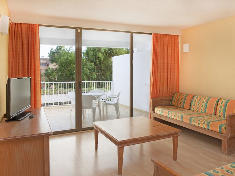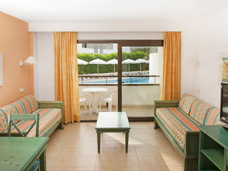 - Apartment Basic Garden View (APX5), Appartement, Nichtraucherzimmer, im Nebengebäude, Gartenseite, Gartenblick, Blick auf Jardín, ca. 50 m², letzte Komplettrenovierung 2002, Gesamtanzahl der Räume in diesem Zimmertyp: 11, Aufteilung wie folgt: kombiniertes Wohn-/Schlafzimmer, 2 Einzelbetten, 2 Schlafsofas (80x180cm), Babybett: ohne Gebühr, Anfrage nicht notwendig, Reservierung notwendig, Klimaanlage: ohne Gebühr, zentral gesteuert, kalt, warm, Fußboden: Laminat, Safe: pro Tag ab 3 EUR, Schreibtisch, Kochnische, Kühlschrank, Esstisch, Telefon, Internet: WLAN/WiFi: ohne Gebühr, Fernseher: Flatscreen, im Wohnbereich, Sat-TV, Reinigungsservice: täglich, ohne Gebühr, Badewanne, WC, Föhn, Balkon oder Terrasse: mit Sitzgelegenheit