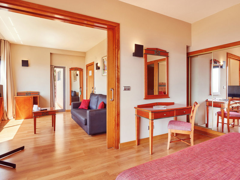 - Bungalow Suite with terrace (FZX1), Familienzimmer, im Nebengebäude, ca. 43 m², Gesamtanzahl der Räume in diesem Zimmertyp: 2, Aufteilung wie folgt: kombiniertes Wohn-/Schlafzimmer, 1 Schlafzimmer, 1 Schlafsofa, Babybett: ohne Gebühr, Anfrage notwendig, Klimaanlage: saisonabhängig, zentral gesteuert, kalt, warm, Fußboden: Parkett, Safe: gegen Gebühr, Sofa, Minibar: gegen Gebühr, Telefon, Internet: WLAN/WiFi: ohne Gebühr, Fernseher: Sat-TV, Badewanne, WC, Bademantel, Slipper, Föhn, Balkon oder Terrasse
