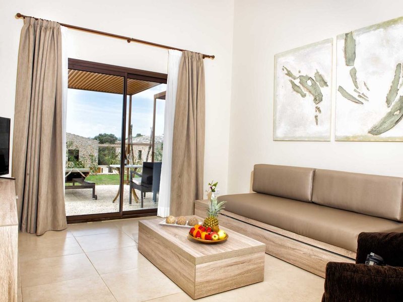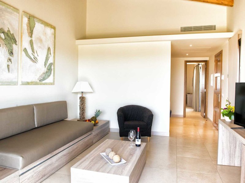 - Suite with terrace (SUX2), Suite, Gartenblick, ca. 52 m², Gesamtanzahl der Räume in diesem Zimmertyp: 2, Aufteilung wie folgt: kombiniertes Wohn-/Schlafzimmer, 1 Schlafzimmer, 1 King Size Bett (200x200cm), Babybett: ohne Gebühr, Klimaanlage: individuell regelbar, Heizung: individuell regelbar, Fußboden: Fliesenboden, Safe, Sitzecke, Sofa, Bügeleisen, Bügelbrett, Minibar: gegen Gebühr, Softdrinks, Wasser, alkoholische Getränke, Snacks, Minibarauffüllung, Telefon, Internet: WLAN/WiFi: ohne Gebühr, Fernseher: Flatscreen, im Wohnbereich, im Schlafzimmer, Sat-TV, Reinigungsservice, Dusche, separates WC, Bademantel, Slipper, Föhn, Terrasse: mit Liegen, mit Sitzgelegenheit