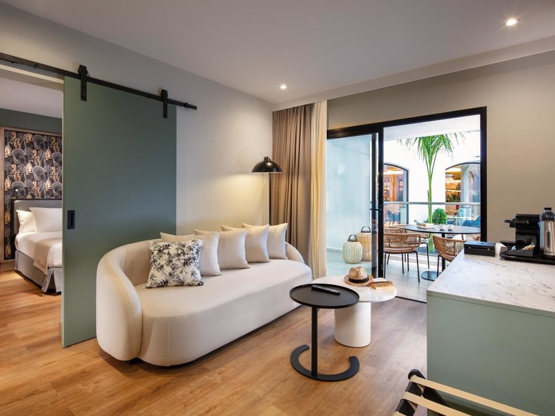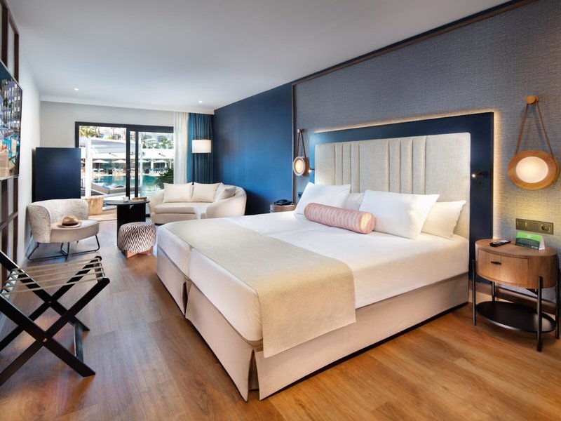 - Junior Suite Esencia Pool View (JSX2), Juniorsuite, Poolblick, ca. 41 m², letzte Komplettrenovierung 2022, Gesamtanzahl der Räume in diesem Zimmertyp: 1, Aufteilung wie folgt: kombiniertes Wohn-/Schlafzimmer, Klimaanlage: ohne Gebühr, individuell regelbar, zentral gesteuert, Fußboden: Laminat, Safe: ohne Gebühr, Sofa, Wasserkocher, Minibar: gegen Gebühr, Telefon, Internet: WLAN/WiFi: ohne Gebühr, Fernseher: Flatscreen, deutsches Programm, Sat-TV, Roomservice: gegen Gebühr, Reinigungsservice: täglich, ohne Gebühr, Dusche, WC, Bademantel: ohne Gebühr, Slipper: ohne Gebühr, Föhn, Kosmetikspiegel, Balkon oder Terrasse: mit Sitzgelegenheit