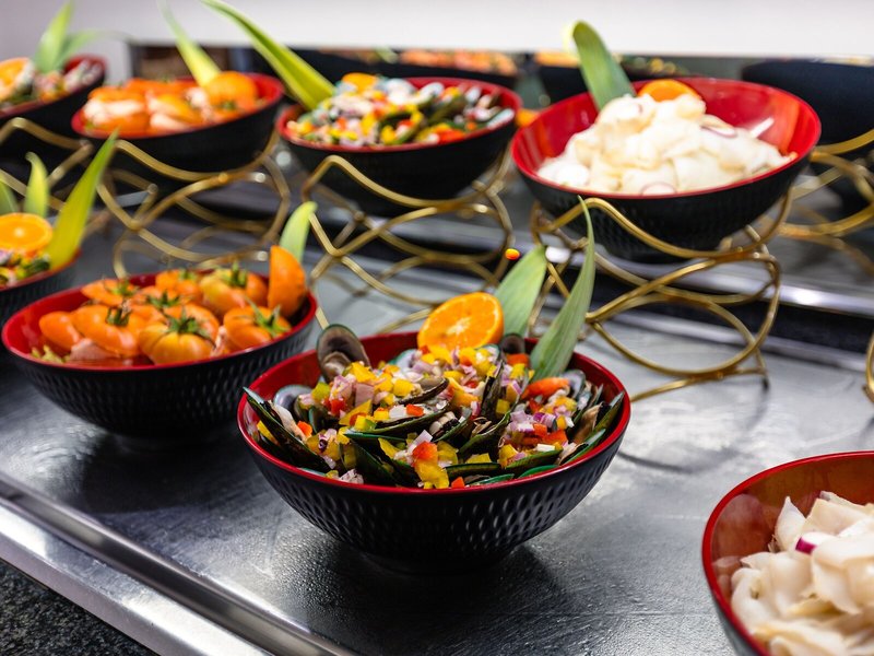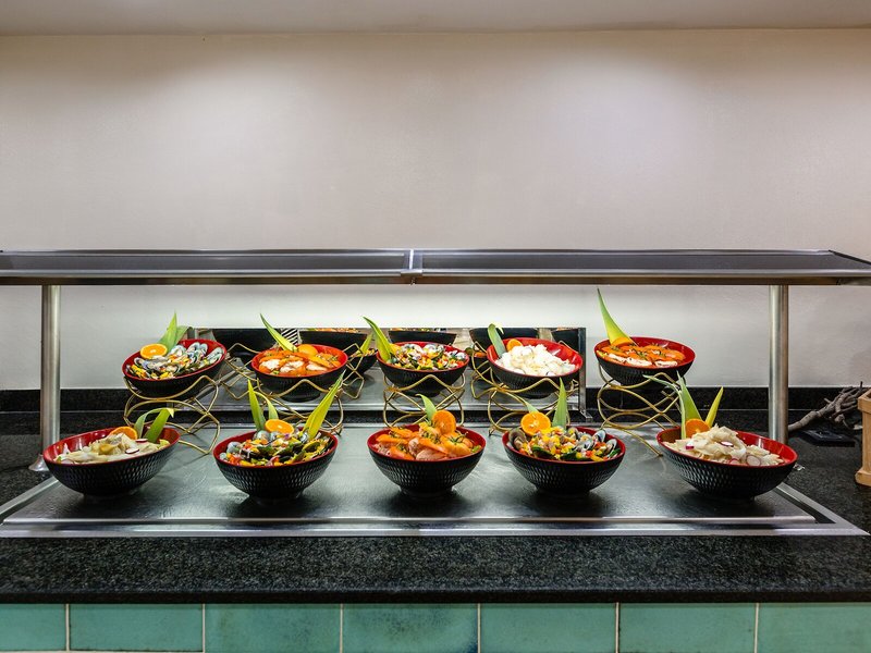 Essen & Trinken: Die gastronomischen Einrichtungen umfassen ein Restaurant, ein Café und eine Bar. Die Unterbringung bietet als buchbare Verpflegungsleistungen Halbpension und Vollpension. Ein leckeres und reichhaltiges Buffet erwartet die Gäste zum Frühstück, Mittag- und Abendessen. Bei Bedarf werden auch glutenfreie Mahlzeiten zubereitet. Eine besondere Attraktion ist das Showcooking.