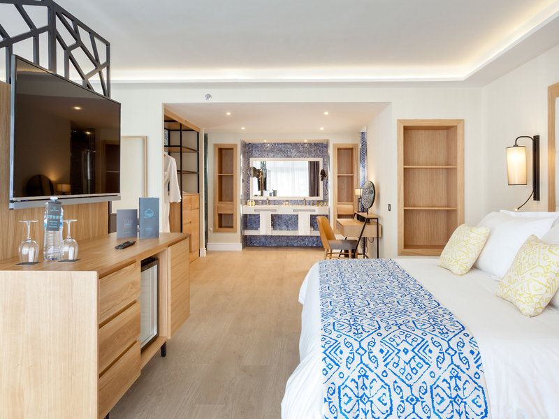 - Suite Side Ocean View (SUX1), Doppelzimmer, Nichtraucherzimmer, Neubau, Meerseite, seitlicher Meerblick, ca. 80 m², letzte Komplettrenovierung 2017, Gesamtanzahl der Räume in diesem Zimmertyp: 1, Aufteilung wie folgt: kombiniertes Wohn-/Schlafzimmer, Klimaanlage: ohne Gebühr, zentral gesteuert, kalt, Fußboden: Laminat, Safe: ohne Gebühr, Sofa, Schreibtisch, Bügeleisen, Bügelbrett, Minibar: gegen Gebühr, Telefon, Internet: WLAN/WiFi: ohne Gebühr, Fernseher: Flatscreen, deutsches Programm, Deutsche Welle, Sat-TV, Roomservice: gegen Gebühr, Reinigungsservice: täglich 24 Stunden, ohne Gebühr, Dusche, Regendusche, Whirlpool, WC, Bademantel: ohne Gebühr, Slipper: ohne Gebühr, Föhn, Kosmetikspiegel, Balkon oder Terrasse: mit Sitzgelegenheit