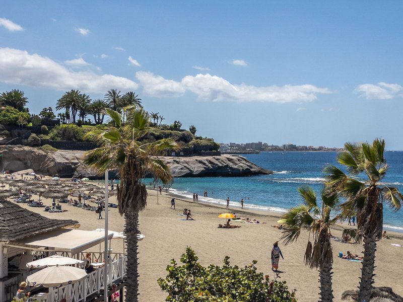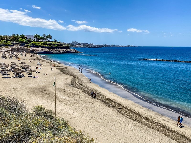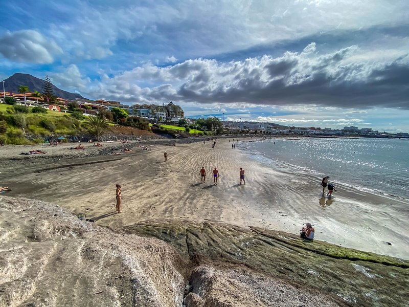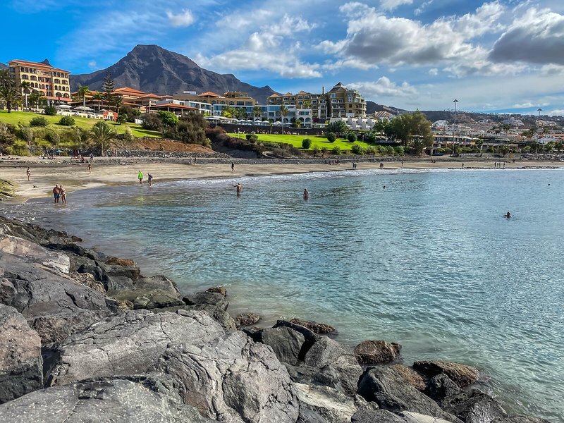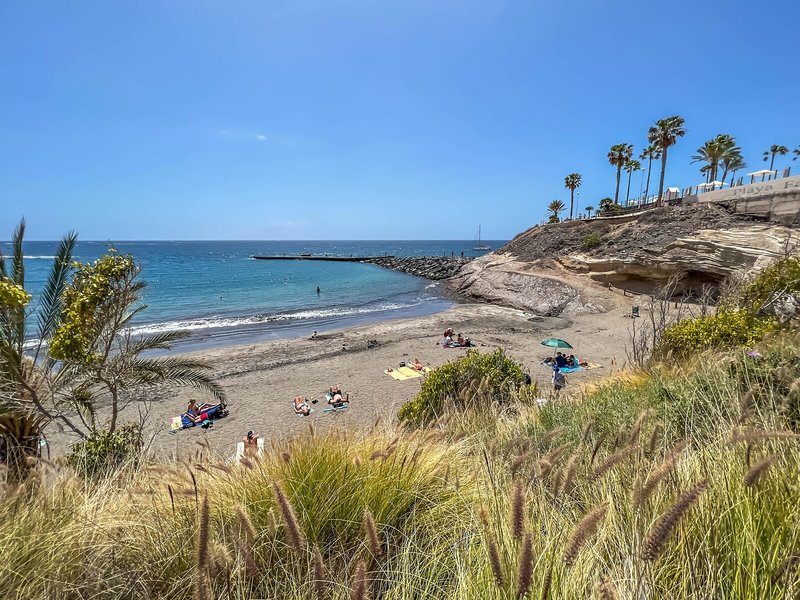 - Pláž Playa Fañabé: piesok, tmavý piesok