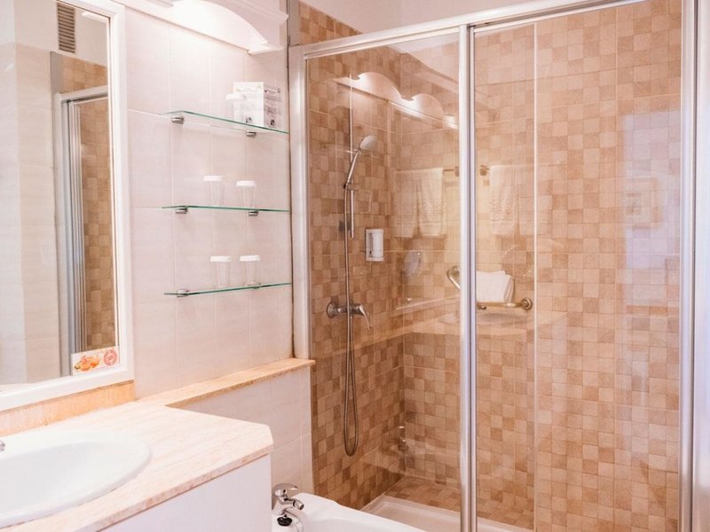 - 2-izbový apartmán (APX2), Apartmán, posledná čiastočná rekonštrukcia 2024, Celkový počet izieb v tomto type izby: 3, Rozloženie: kombinovaná obývacia izba/spálňa, 2 spálne, Podlaha: dlažba, Trezor: za poplatok, Stropný ventilátor, Pohovka, Žehlička, Žehliaca doska, Kuchynský kút, Chladnička: bezplatne, Rúra, Sporák, Mikrovlnná rúra, Kávovar, Kanvica, Hriankovač, Jedálenský stôl, Telefón, Internet: Wi-Fi: bezplatne, TV: v obývacej časti, Upratovacia služba: bezplatne, Vaňa alebo sprchovací kút, WC, Fén, Kozmetické zrkadlo, Balkón alebo terasa