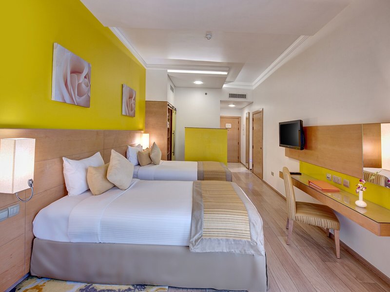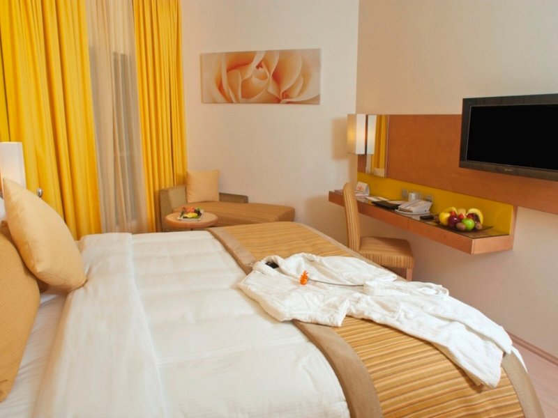 Ubytovanie: Izby zahŕňajú obývaciu izbu, kuchyňu a kúpeľňu, pričom klimatizácia a kúrenie zabezpečujú príjemnú klímu v miestnosti. Balkón je štandardom vo väčšine izieb. Hostia môžu pohodlne spať na manželskej posteli. Prístelky je možné vyžiadať. K dispozícii je aj trezor, minibar a písací stôl. K dispozícii je tiež chladnička a príslušenstvo na prípravu čaju/kávy. Pre väčšie pohodlie hostí je k dispozícii súprava na žehlenie. Okrem toho je k dispozícii telefón, satelitná TV a WiFi. K ďalšiemu vybaveniu patria papuče. Kúpeľňa je vybavená sprchovacím kútom, vaňou a sušičom vlasov. Kozmetické výrobky poskytujú extra pohodlie v kúpeľniach. Rezervovať je možné aj bezbariérové izby s bezbariérovými kúpeľňami. Ubytovanie ponúka rodinné a nefajčiarske izby.
