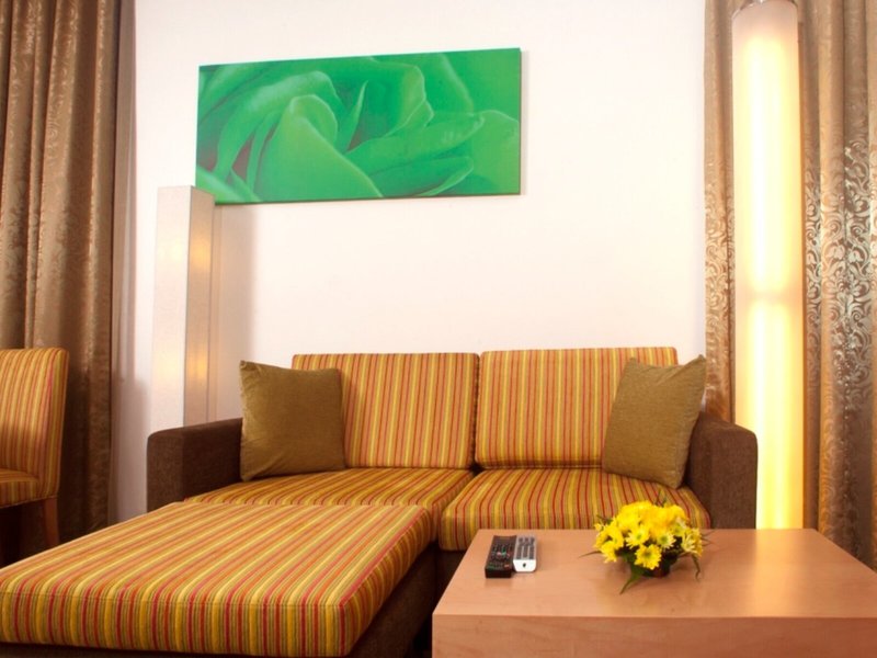 So wohnen Sie: In den Zimmern finden sich ein Wohnzimmer, eine Küche und ein Badezimmer, für ein behagliches Raumklima sorgen eine Klimaanlage und eine Heizung. Ein Balkon gehört zur Standardausstattung der meisten Zimmer. Gemütlich schlafen können die Gäste auf einem Doppelbett. Zustellbetten können angefordert werden. Außerdem sind ein Safe, eine Minibar und ein Schreibtisch verfügbar. Auch ein Kühlschrank und eine Tee-/Kaffeemaschine sind vorhanden. Ein Bügelset ist für den zusätzlichen Komfort der Gäste verfügbar. Darüber hinaus sind ein Telefon, Sat-TV und WiFi vorhanden. Zu den Vorzügen der Zimmer gehören Hausschuhe. Im Badezimmer, ausgestattet mit einer Dusche und einer Badewanne, gibt es einen Haartrockner. Für besonderen Komfort in den Badezimmern sorgen Kosmetikartikel. Außerdem sind rollstuhlgerechte Zimmer mit barrierefreiem Badezimmer buchbar. Die Unterbringung bietet Familien- und Nichtraucherzimmer.