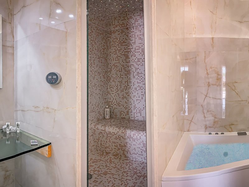Vaše ubytovanie: Klimatizácia a kúrenie zabezpečujú príjemnú teplotu v izbe. Izby sú vybavené manželskou posteľou a rozkladacou pohovkou. Samostatné spálne sú k dispozícii na požiadanie. Prístelky je možné požiadať. K dispozícii je aj trezor a písací stôl. Štandardom je minichladnička. Pre vaše pohodlie je k dispozícii telefón, TV so satelitným/káblovým príjmom a bezplatné Wi-Fi pripojenie na internet. Kúpeľňa je vybavená sprchovacím kútom a vírivkou a obsahuje aj sušič vlasov. Hostia ocenia bezplatné toaletné potreby a uteráky v kúpeľniach. Pre rodiny s deťmi sú k dispozícii rodinné izby.
