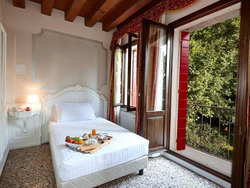 Poloha a okolie Tento historický hotel ponúka ideálne miesto na dovolenku: je obklopený prírodou a zeleňou, no zároveň len kúsok od nádherných a dôležitých miest Benátky (cca 10 km), Treviso (cca 25 km) a Padova (cca 35 km). Nie je ďaleko ani od známych letovísk Cortina d'Ampezzo a Dolomity, jazera Garda a pláží na pobreží Jadranského mora. Reštaurácie sa nachádzajú priamo pred hotelom a spojenie s verejnou dopravou je vzdialené len asi 100 m. Historické centrum Mirana je od ubytovania vzdialené len asi 1 km. Hostia tu nájdu stále rovnakú tichú a pokojnú atmosféru, ktorá je typická pre starobylé, šľachtické vily na Riviera del Brenta. Železničná stanica je vzdialená asi 3 km. Medzinárodné letisko Marco Polo je od ubytovania vzdialené asi 12 km a letisko Treviso - San Angelo asi 18 km.