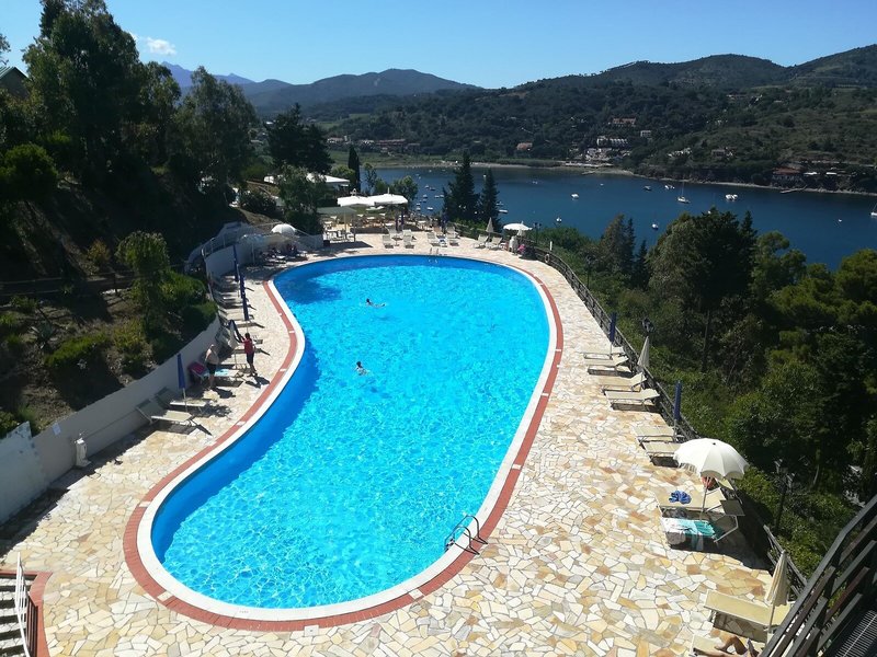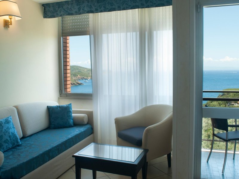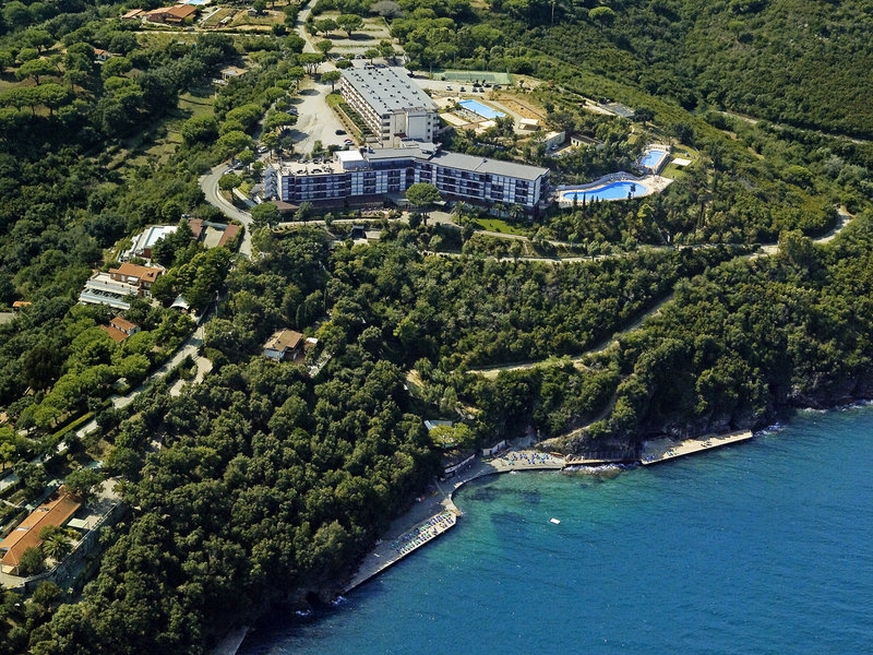 Poloha a okolie Hotel sa nachádza uprostred stredomorskej prírodnej krajiny s nádherným výhľadom na more. Do malej hotelovej zátoky na kúpanie (kúpacie mólo vľavo a vpravo) sa ľahko dostanete panoramatickým výťahom. Capoliveri je vzdialený asi 2,5 km, zastávka autobusu je k dispozícii. Porto Azzuro s mnohými kaviarňami a reštauráciami je vzdialené len asi 5 km, tiež len pár minút taxíkom.