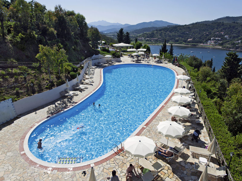 Toto vás čaká: Dovolenka na Elbe, ktorá zostane nezabudnuteľná. Dva panoramatické bazény umiestnené v zeleni s nádherným výhľadom na záliv Porto Azzurro pozývajú na kúpanie vo vode.