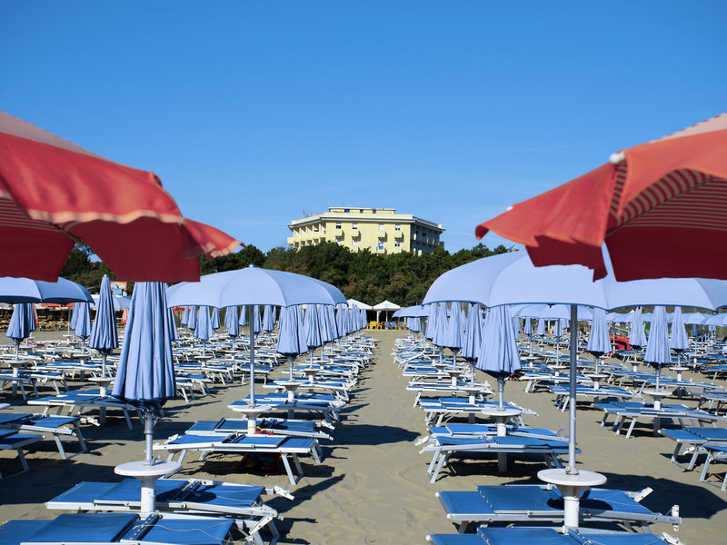 Lage & Umgebung Das Color King Marte Family Village liegt in Lido di Classe an der Adriaküste, eingebettet zwischen duftendem Pinienwald und dem hoteleigenen Strandabschnitt, der direkt vom Hotel aus erreichbar ist. Die ruhige Lage am Meer eignet sich ideal für Familien, die Strand, Natur und unkomplizierte Urlaubsatmosphäre schätzen. Ravenna mit seinen UNESCO-Welterbestätten ist rund 10 km entfernt, während du in der näheren Umgebung Radwege durch die Pinienwälder und entlang der Küste findest. Der feine Sandstrand fällt sanft ins Meer ab und bietet viel Platz zum Spielen und Entspannen. Hier kannst du mit der Familie zur Ruhe kommen und gleichzeitig von vielfältigen Freizeitmöglichkeiten profitieren. Der Vergnügungspark Mirabilanda ist ca. 5 km entfernt. Nach Milano Marittima sind es ca. 6 km und nach Cesenatico ca. 20 km.