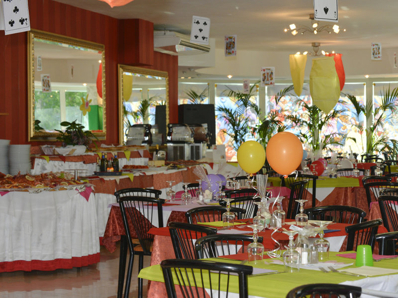 - Hlavná reštaurácia King Marte: Kuchyňa: medzinárodná, stredomorská, regionálna, ryby/morské plody, detská výživa, detský bufet, detské menu, vegetariánske jedlá, bufet, výber z menu, show cooking, 12:30 - 14:00, 19:30 - 21:00 a 7:30 - 9:00, klimatizovaná, na pláži