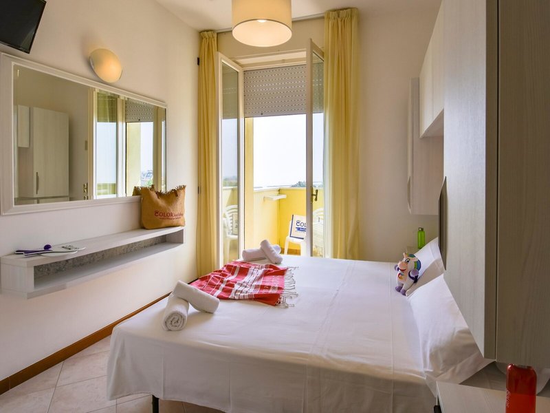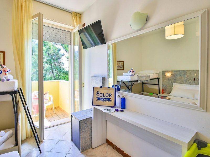 Poloha a okolie: Rodinná dedinka Color King Marte sa nachádza v Lido di Classe na pobreží Jadranského mora, medzi voňavým borovicovým lesom a súkromnou plážou hotela, ktorá je priamo prístupná z hotela. Pokojná prímorská poloha je ideálna pre rodiny, ktoré si cenia pláž, prírodu a uvoľnenú dovolenkovú atmosféru. Ravenna s pamiatkami svetového dedičstva UNESCO je vzdialená približne 10 km, zatiaľ čo v blízkosti nájdete cyklistické chodníky cez borovicové lesy a pozdĺž pobrežia. Jemná piesočnatá pláž sa mierne zvažuje do mora a ponúka dostatok priestoru na hranie a relax. Tu si môžete s rodinou oddýchnuť a zároveň využiť rôzne voľnočasové aktivity. Zábavný park Mirabilanda je vzdialený približne 5 km. Milano Marittima je vzdialená približne 6 km a Cesenatico približne 20 km.