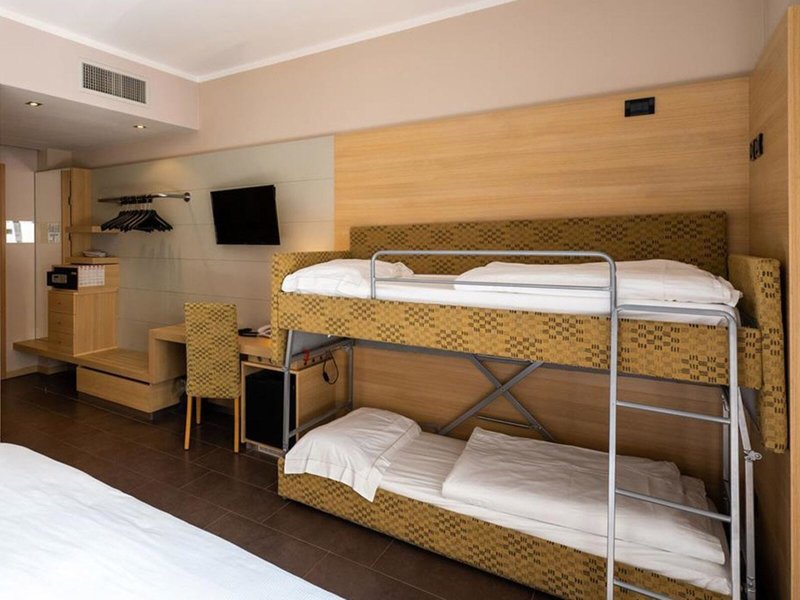 - Das Zustellbett für eine 3. Person im Zimmertyp Double Standard (DZS1) und Double Prestige (DZS2) ist ein Etagenbett-Sofa