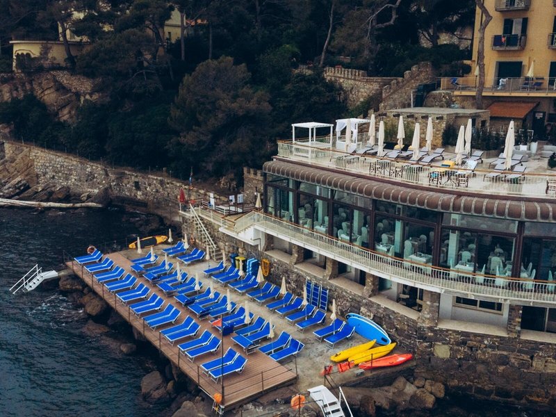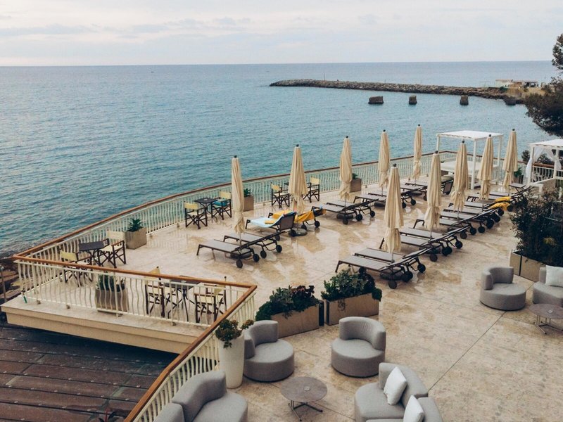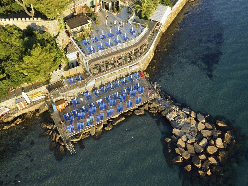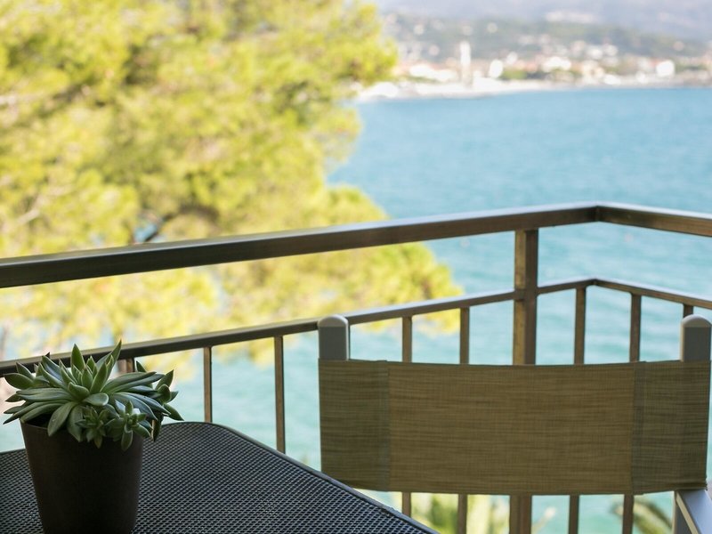 Lage & Umgebung Direkt am Meer auf einer kleinen Landzunge gelegen, umgeben von viel Grün, in einer Seitenstraße. Ins Ortszentrum ca. 400 m. Ein hoteleigenes Badeplateau befindet sich direkt am Hotel und ist über Treppen erreichbar. Der Strand liegt ca. 150 m entfernt.