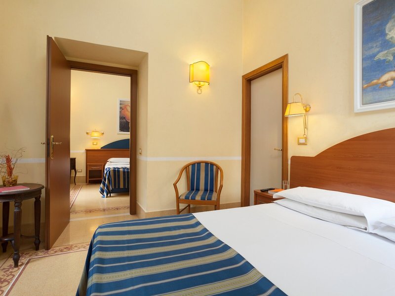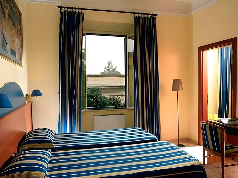 Poloha a okolie: Tento mestský hotel sa nachádza medzi železničnou stanicou Roma Termini a bazilikou Santa Maria Maggiore. Diokleciánove kúpele, Národné rímske múzeum, Opera a Via Nazionale sú vzdialené 5 minút chôdze. Koloseum a Rímske fórum sú vzdialené približne 10 minút chôdze. Kvirinálsky palác, Španielske schody a Fontána di Trevi sú vzdialené približne 15 minút chôdze. Hlavné autobusové linky a metro sa nachádzajú priamo oproti železničnej stanici Termini, približne 150 metrov od hotela. V bezprostrednej blízkosti hotela sa nachádzajú aj reštaurácie, bary a obchody. Rímske letiská Ciampino a Fiumicino sú vzdialené približne 15, respektíve 25 kilometrov.