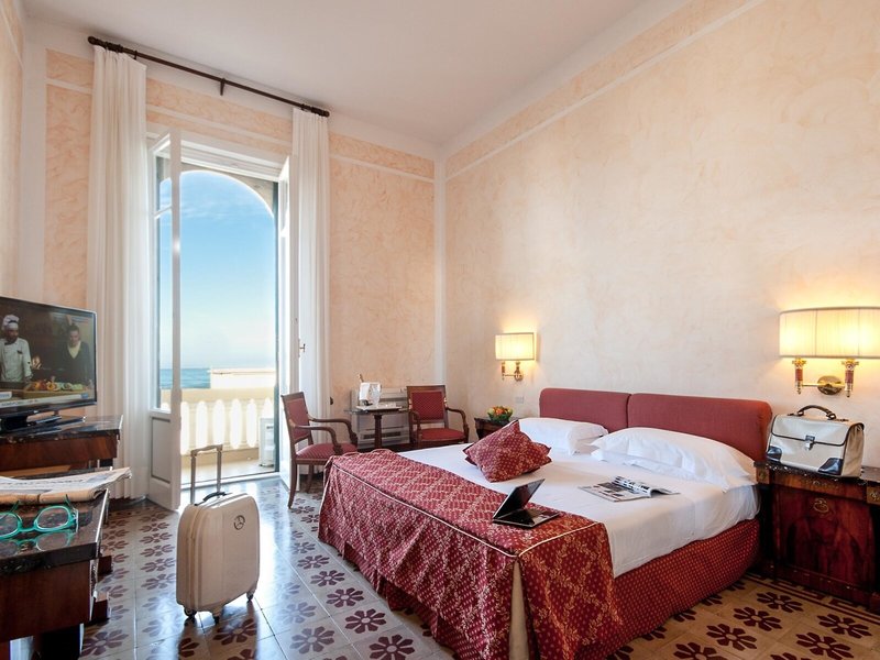 - Sea View with Balcony (DZM1), Doppelzimmer, Nichtraucherzimmer, im Hauptgebäude, Meerblick, seitlicher Meerblick, ca. 12 - 15 m², Gesamtanzahl der Räume in diesem Zimmertyp: 1, Babybett: pro Tag ca. 15 EUR, Anfrage notwendig, Klimaanlage: ohne Gebühr, saisonabhängig, individuell regelbar, Heizung: saisonabhängig, individuell regelbar, Safe: ohne Gebühr, Bügelbrett, Kaffee-/Teezubereiter, Minibar: gegen Gebühr, Minibarauffüllung, Telefon, Internet: WLAN/WiFi: ohne Gebühr, Fernseher: Flatscreen, im Schlafzimmer, deutsches Programm, Sat-TV, SKY-Programme, Roomservice: täglich 07:30 Uhr - 23:45 Uhr, gegen Gebühr, Reinigungsservice: täglich, ohne Gebühr, Badewanne oder Dusche, WC, Föhn