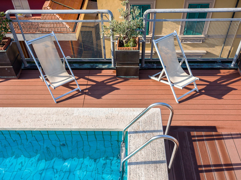 Lage & Umgebung Das Hotel befindet sich mitten im Zentrum von Montecatini Terme, in unmittelbarer Nähe der beliebtesten Thermalbäder. Der Pool auf der Dachterrasse wird gemeinsam mit den Gästen des Hotels Bosten genutzt. Der Bahnhof, von wo aus Busse und Züge nach Florenz, Lucca und Pisa abfahren, liegt nur ca. 500 m entfernt.